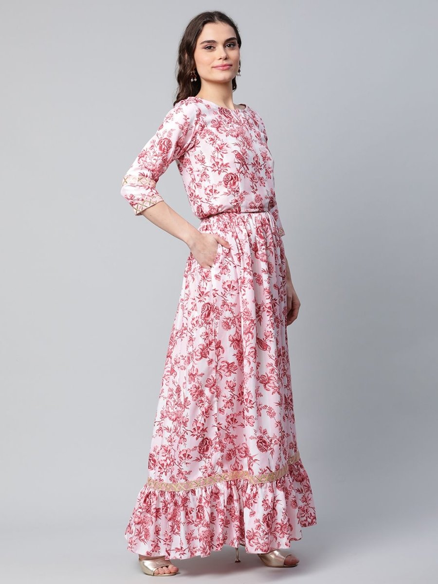 Pink Digital Print rayon Lehenga choli, it has Round Neck and 3/4th Sleeve, Let your little Women flaunt her fashionable side with this clothing set from Ahalyaa. Comfy and stylish, it will make her look even more adorable."