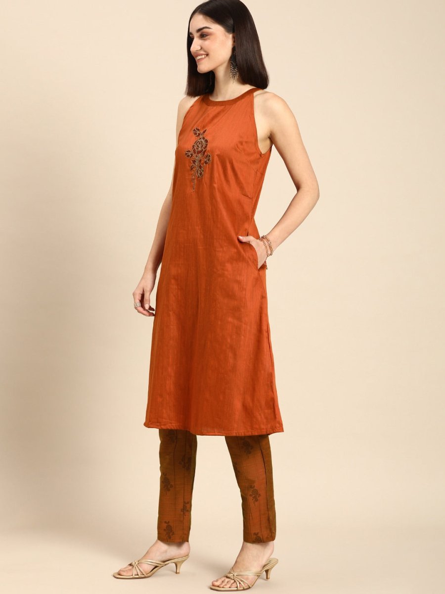 All About You Women Orange Floral Print Embroidered Regular Kurta with Trousers Product Details Orange embroidered Kurta with TrousersKurta desi...