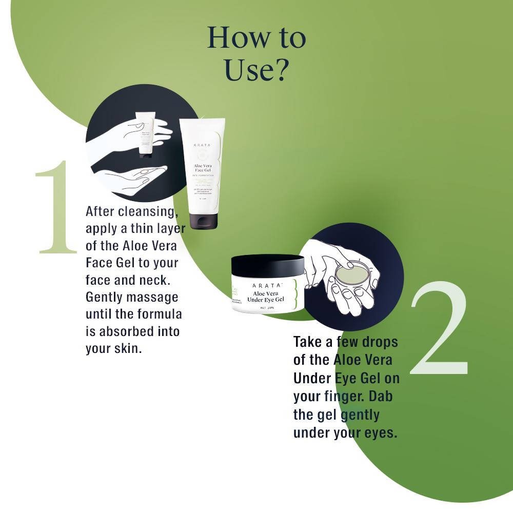 Arata Hydration Boost Aloe Vera Gel ComboThis combo contains:Arata Anti-Pegmentation ALoe Vera Gel: 100 mlArata Aloe Vera Under Eye Gel: 10 mlOur A...