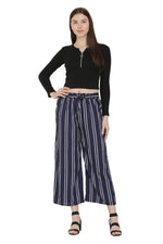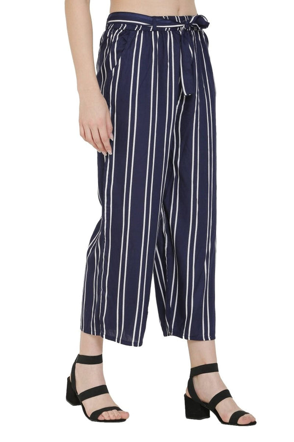 Asmaani Navy Blue color Rayon Fabric Stripped Palazzo: