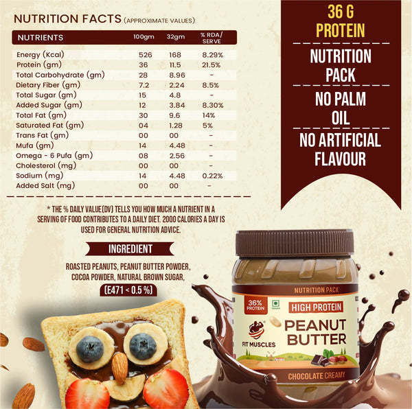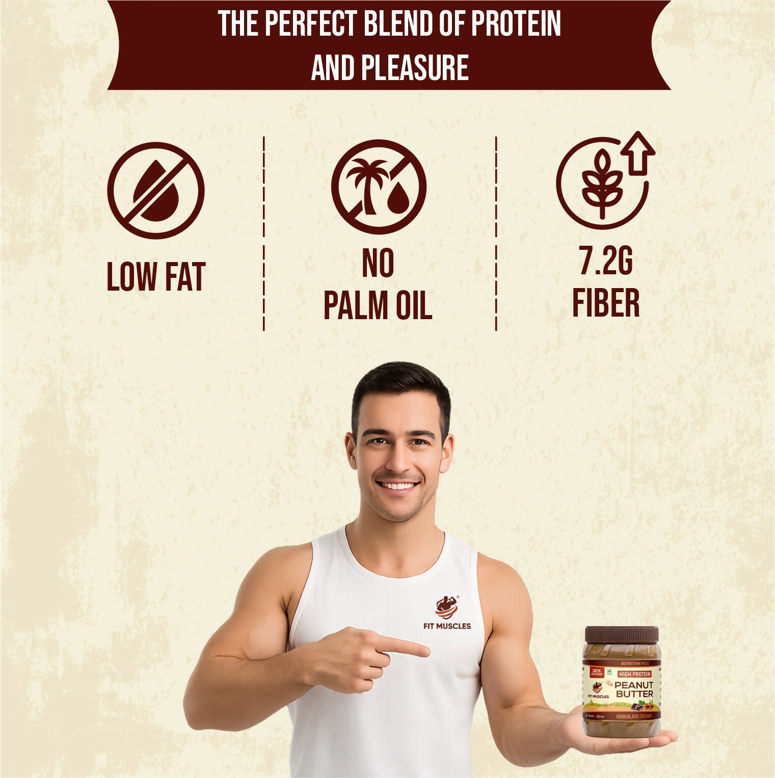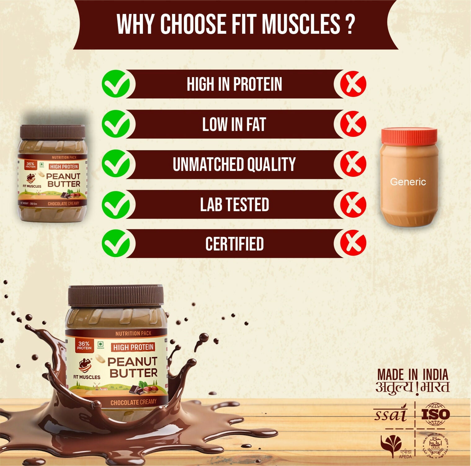 Fit Muscles High Protein Peanut Butter Chocolate CreamyProduct Details: Item Type: Peanut Butter Flavor: Chocolate Creamy Serving Recommendation: 2...