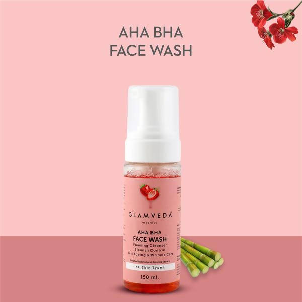 Glamveda AHA/BHA Face Wash Blemish Control, Anti Ageing & Wrinkle Care Face Wash. Gently cleanses the skin, removes dirt & debris, protects skin from natural moisture to reveal a natural & healthy glow. Quick rinsing formula leaves skin fresh, nourished & hydrated, without excessive drying the skin
