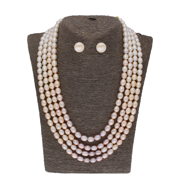 J Pearls Tulsi 4 Lines Pearl Necklaces - Real Pearl Jewelry - 20-22 Inches