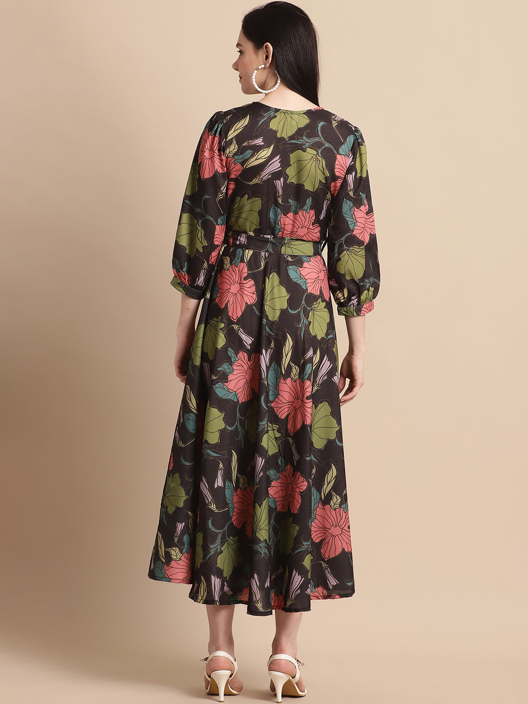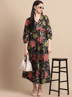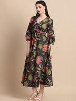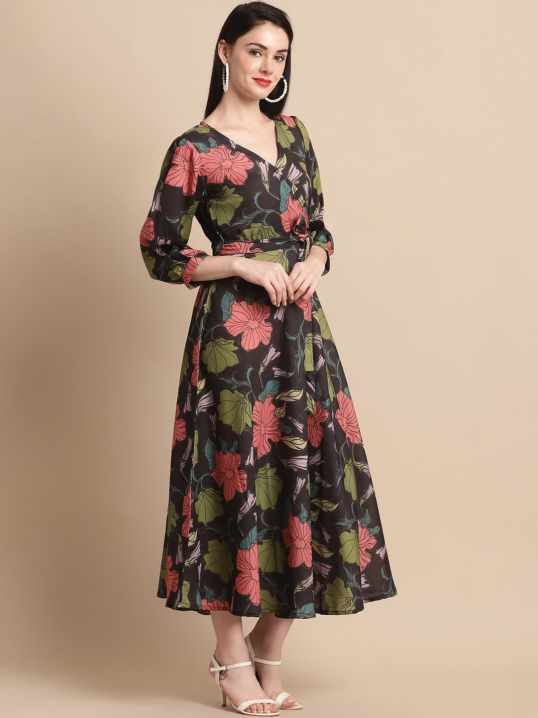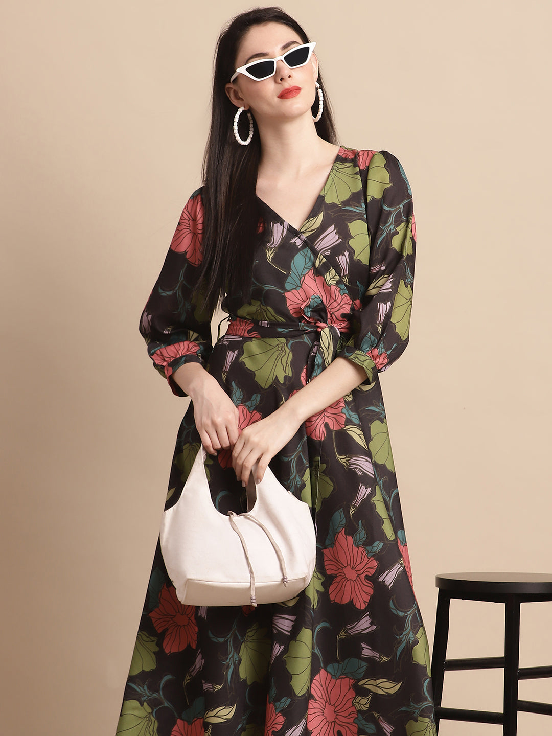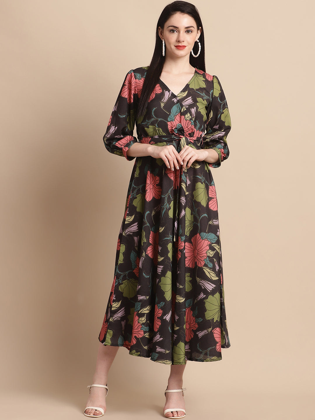 Jainish Women's WoBlack Floral Printed A-line Dress With BeltBrand Color : Black Neck Type : V-Neck Pattern : Printed Material : Viscose Rayon ...