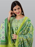 Green printed Kurta with Churidar with dupatta
