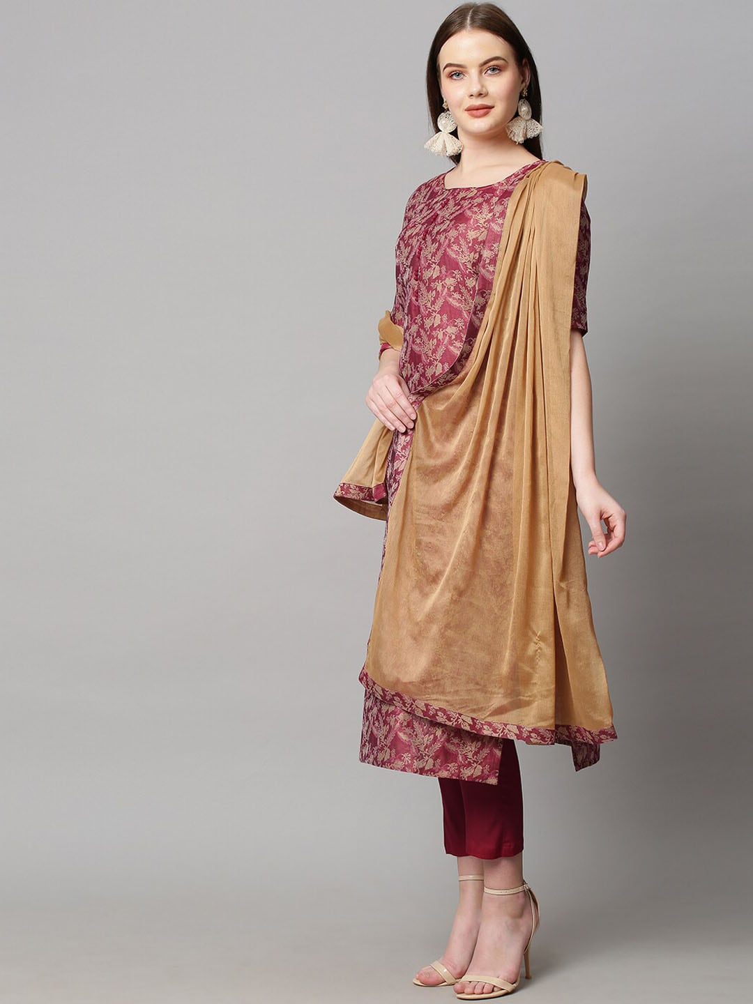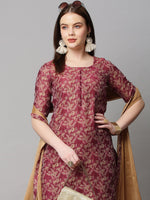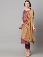 Maroon printed Kurta with Trousers with dupatta