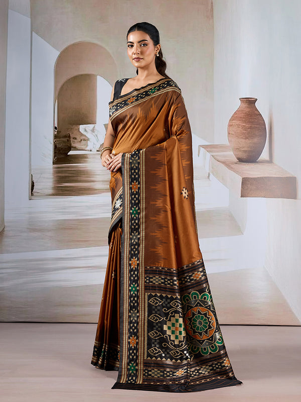 Monjolika Fashion Rust Weaving Handloom Silk Blend Designer Saree - Free Size