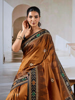 Monjolika Fashion Rust Weaving Handloom Silk Blend Designer Saree