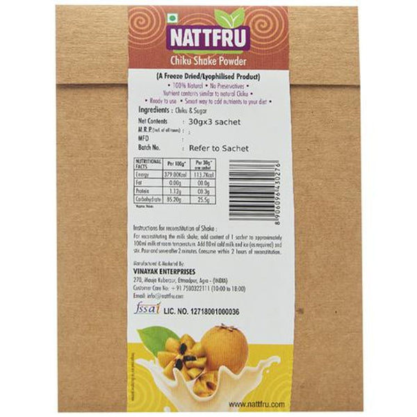 Nattfru Chiku Shake Powder is a powder made from the pulp of Chiku fruit. It is one of the best beverages which is a great source of energy also. It is one of the best shakes ever which boosts immune system and improves eye vision. And it also solve digestive ailments while giving energy for full day for other physical activities.