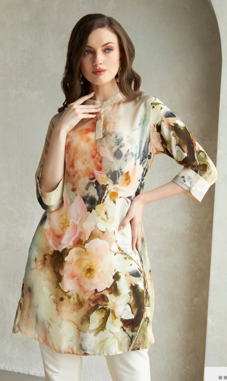 This set includes: Only Kurti || Neck Style: Mandrian Collar.