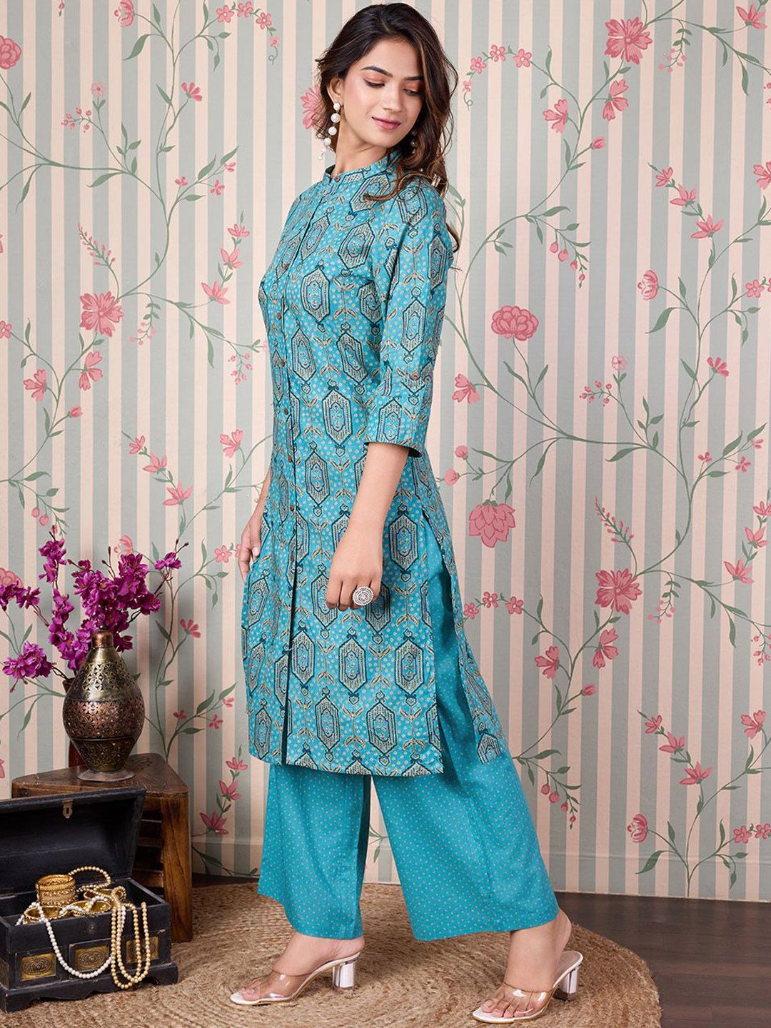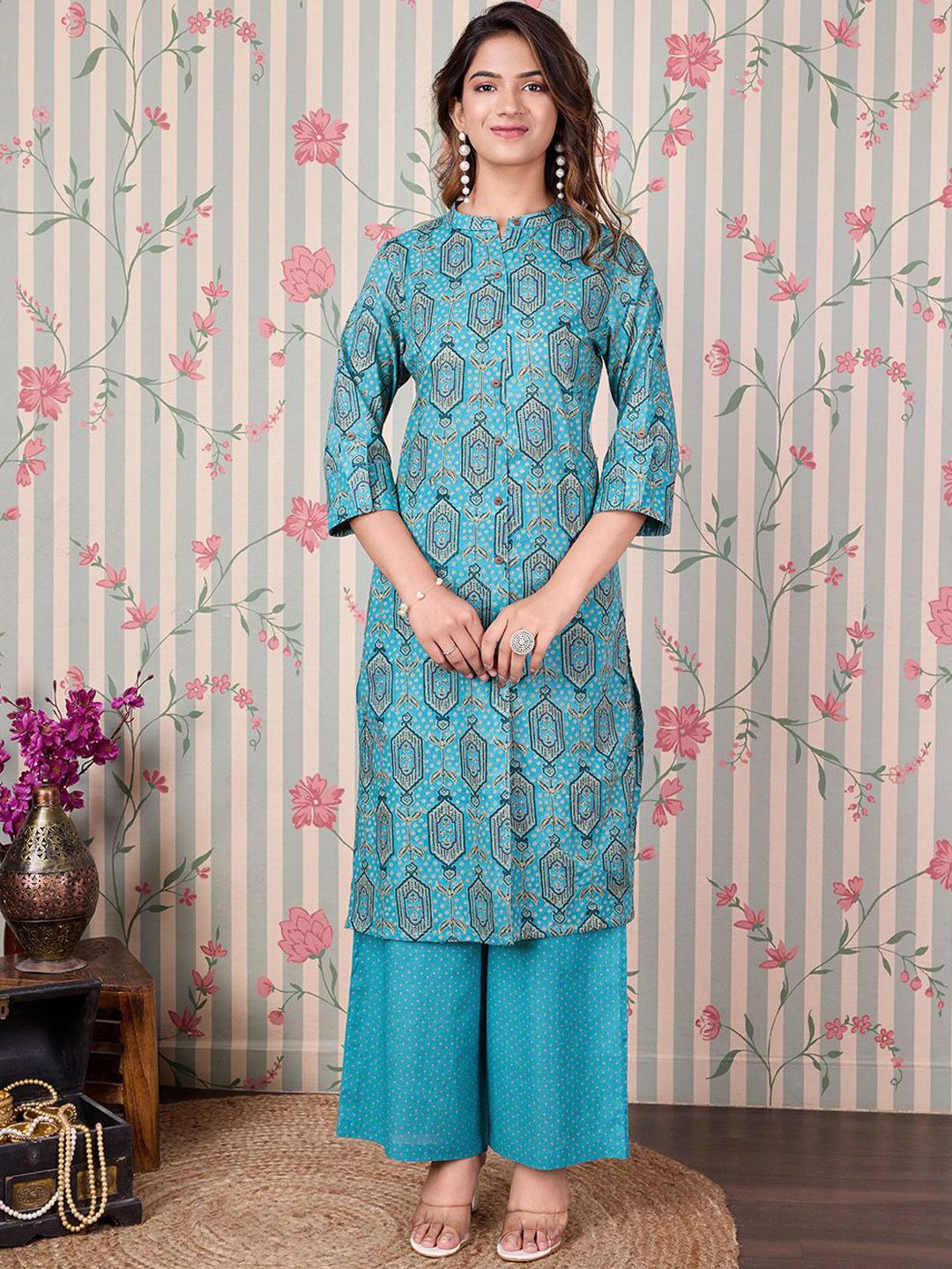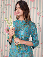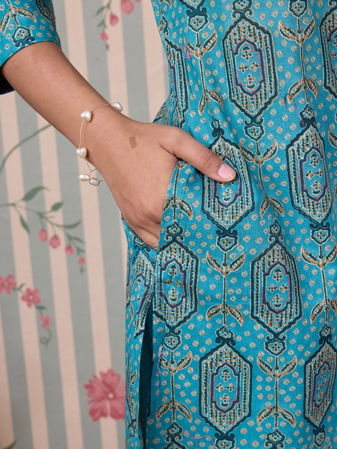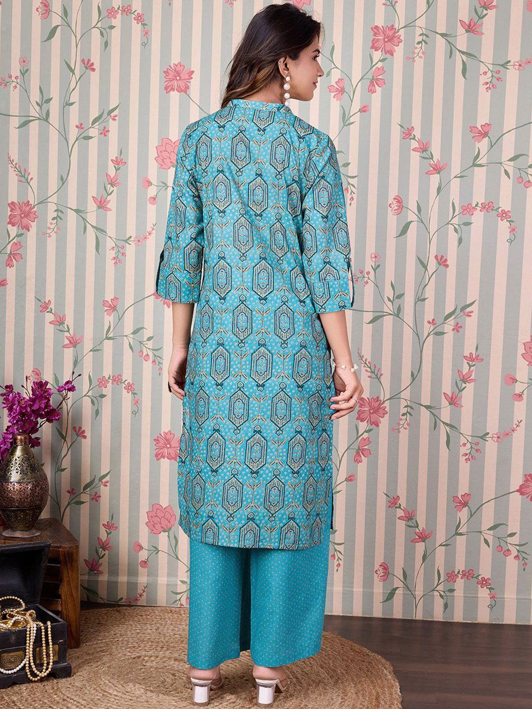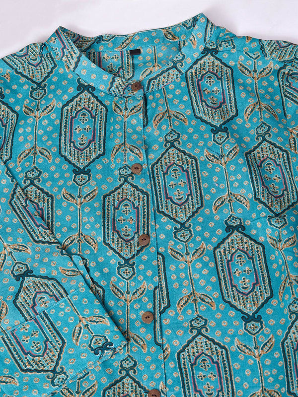 Ode by House of Pataudi Printed Regular Pure Cotton Kurta with Trousers Product Details Sea green & beige printed Kurta with TrousersKurta d...