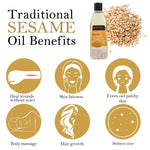 For Hair: Highly nourishing and healing sesame oil is widely known as a hair growth stimulator. The richness of vitamin E, B complex in this oil strengthens hair from the roots and nourishes it from the deep.