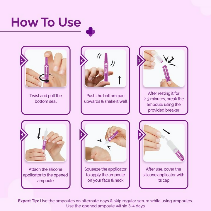 • Expert Tip: Use the ampoules on alternate days & skip regular serum while using ampoules. Use the opened ampoule within 3-4 days.