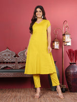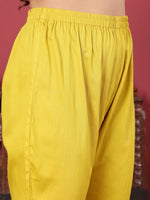 Yellow Floral Thread Embroidered, Mandarin Collar Kaftan With Inner And Tonal Bottom