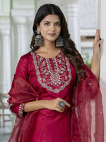 Vellora Red Silk Blend Embroidered Salwar Suit for Everyday WearA graceful Salwar Suit designed for everyday elegance and modest charm. This beauti...