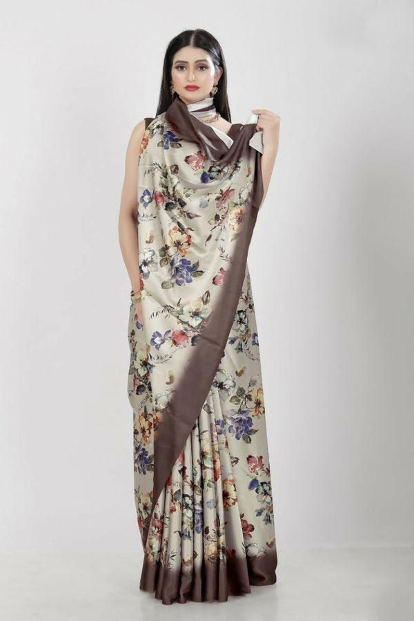 Aayaa Designer Printed Satin Saree - Multi Color