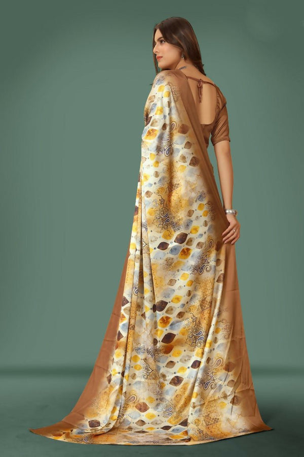 Aayaa Designer Printed Satin Saree - Multi Color Fabric – Satin Silk Blouse Fabric - Satin Work – Heavy digital print Saree length - 5.5 mtr Blouse...