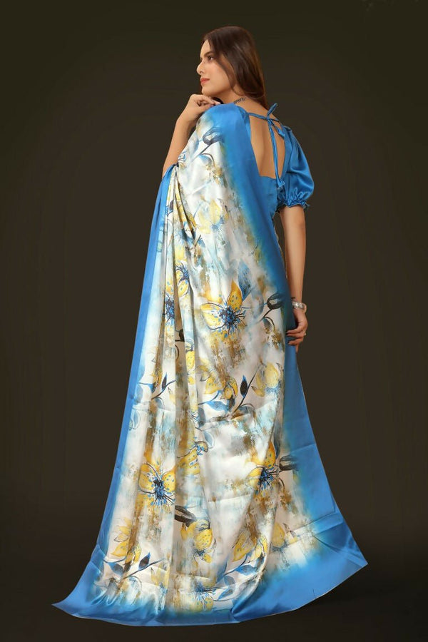 Aayaa Designer Printed Satin Saree - Multi Color Fabric – Satin Silk Blouse Fabric - Satin Work – Heavy digital print Saree length - 5.5 mtr Blouse...