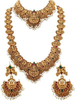 Jewel City Gold-Plated Traditional Goddess Lakshmi Temple Jewellery Bridal Set with Ruby Stone Long Haram Double Necklace Set