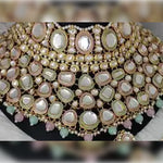• Spectacular multi-layered choker necklace densely adorned with mother of pearl stones in kundan setting