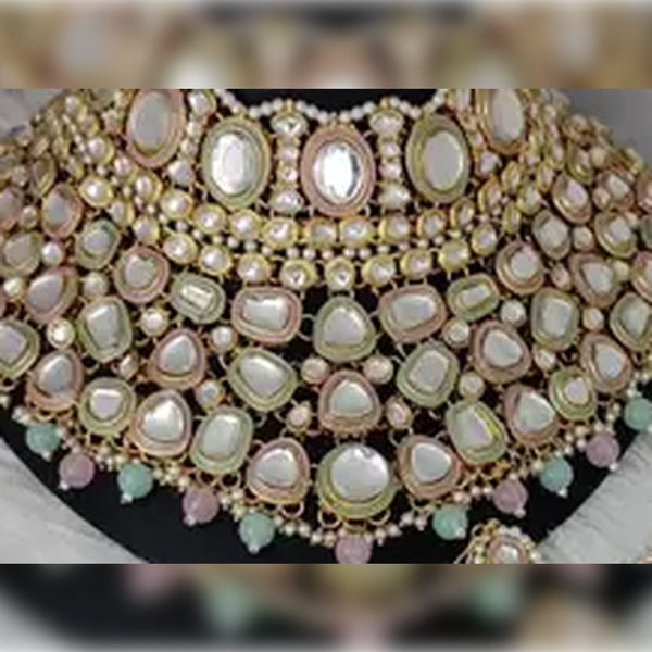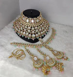 Jewel City Pastel Perfection Kundan Bridal Set - Complete Mother of Pearl Choker with Matching Mathapatti, Earrings