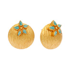 Nuyug 22K Gold-Plated Turquoise Flower Stud Earrings