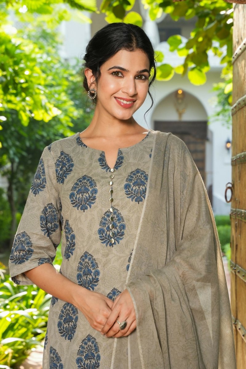 Aramya A-line Linen Cotton Floral Print Women's Kurta - GreyElevate your style with our uniquely designed kurta, perfect for daily wear or casual o...