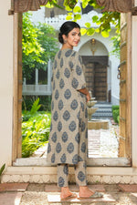Aramya A-line Linen Cotton Floral Print Women's Kurta - Grey