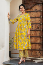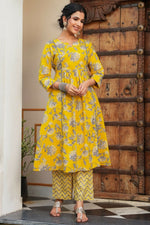 Aramya Anarkali Soft Cotton Gold foil Print Women's Kurta - Yellow