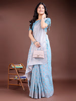 Astita Sky Blue Linen Cotton Woven Zari Work Traditional Tassel Saree