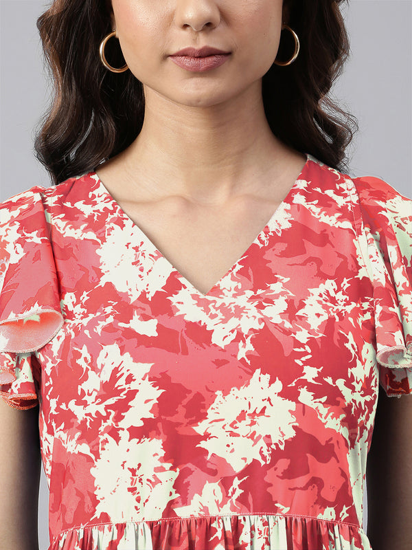 Janasya Dark Georgette Abstract Tiered Dress Top Fabric: Georgette Top Style: Tiered Top Color: Dark Top Pattern: Abstract Top Neck: VNeck To...