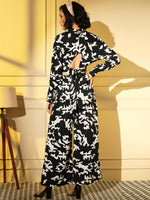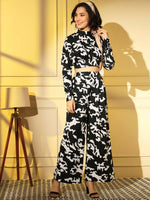 Black Crepe Digital Printed Top With Matching Trouser - Shivani - S