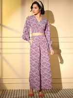 Pink Crepe Digital Printed Top With Matching Trouser - Shivani - S