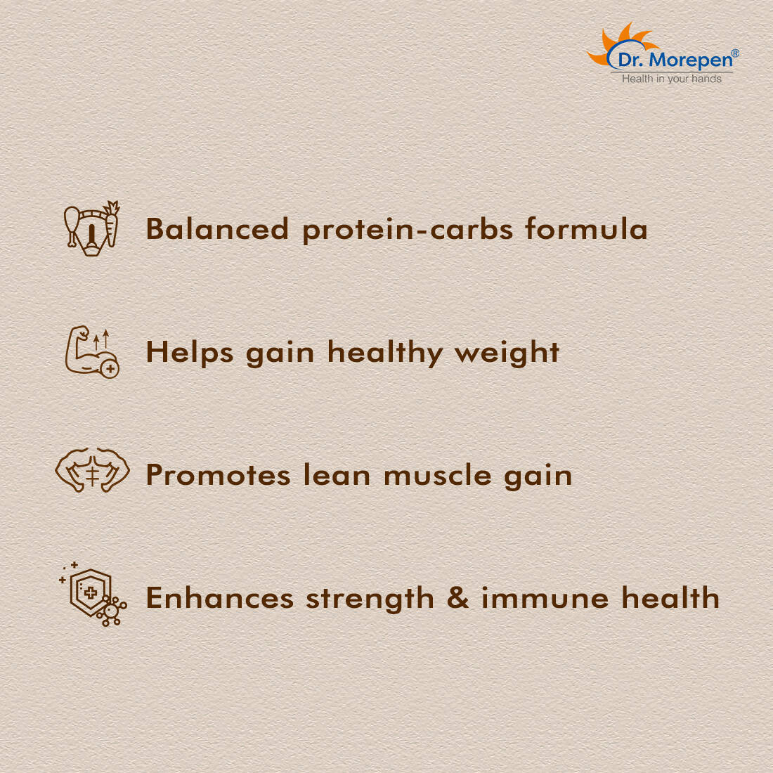 Dr. Morepen Weight Gainer - Chocolate FlavorDirections to Use:: Add One level Scoop (20g) in 150 -200ml milk and give it a robust blend using a sha...