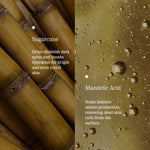 • Sugarcane Soak is a gentle foaming gel cleanser enriched with antioxidant-rich sugarcane and stimulating mandelic acid. Its mild formula can be used everyday and helps remove oil from your pores and cleanse your skin of impurities like dirt and dust—leaving you with matte, bright and smooth skin.