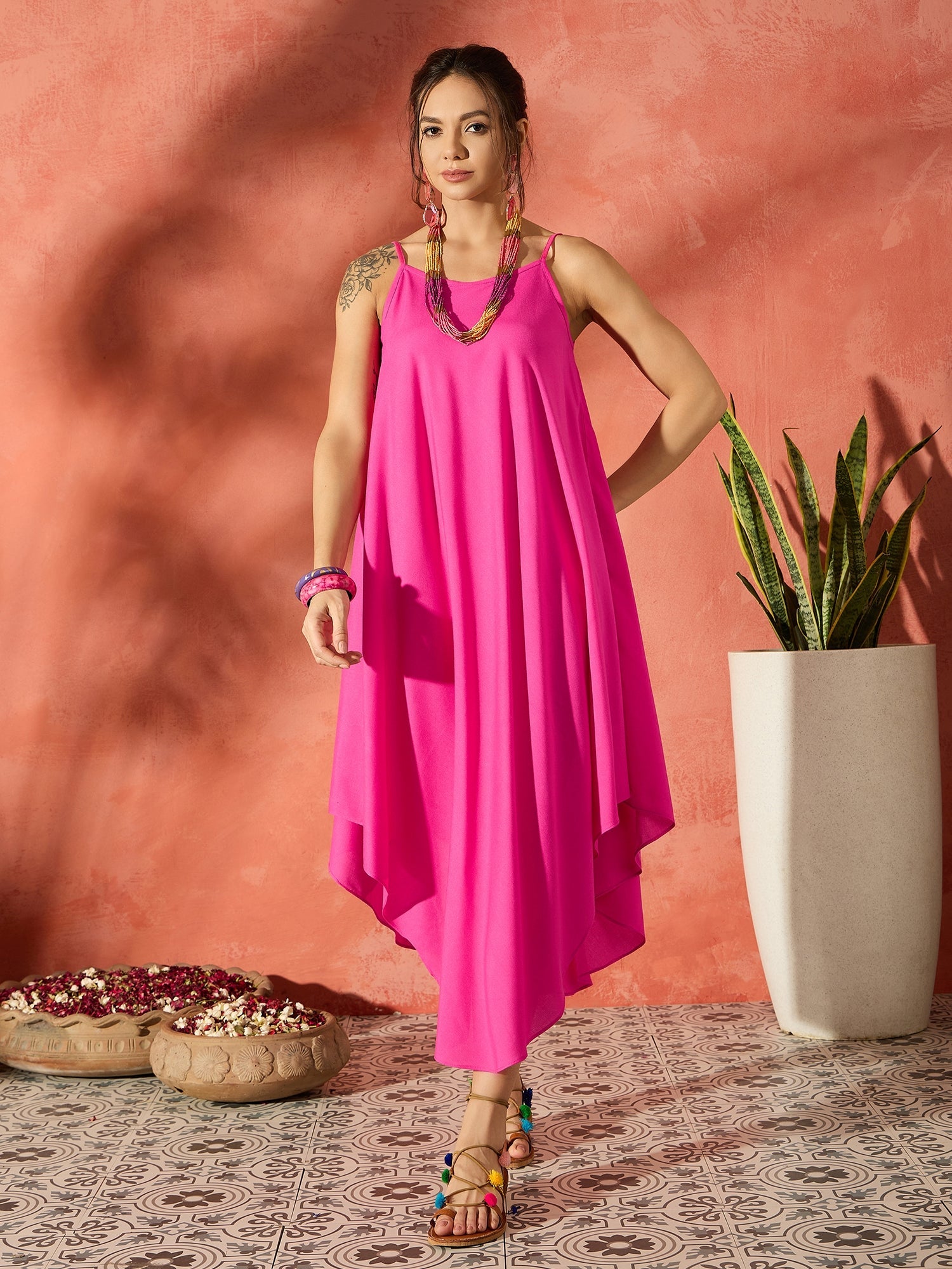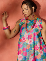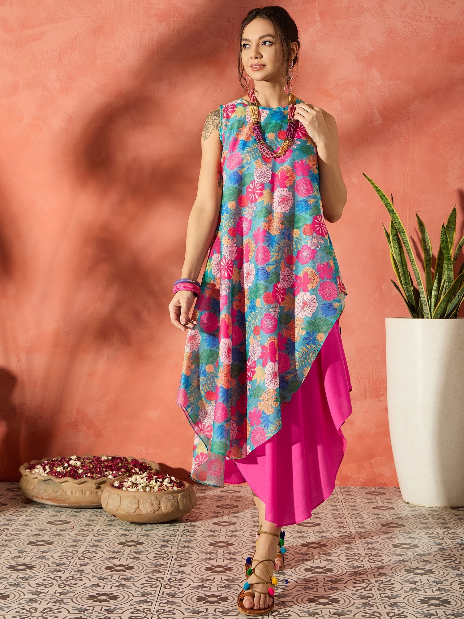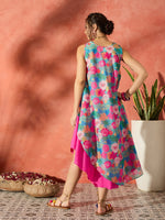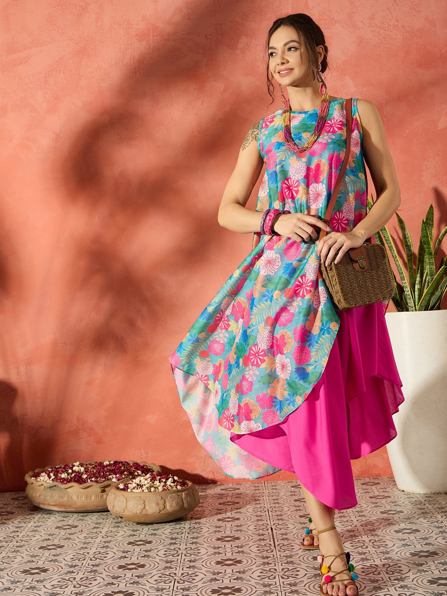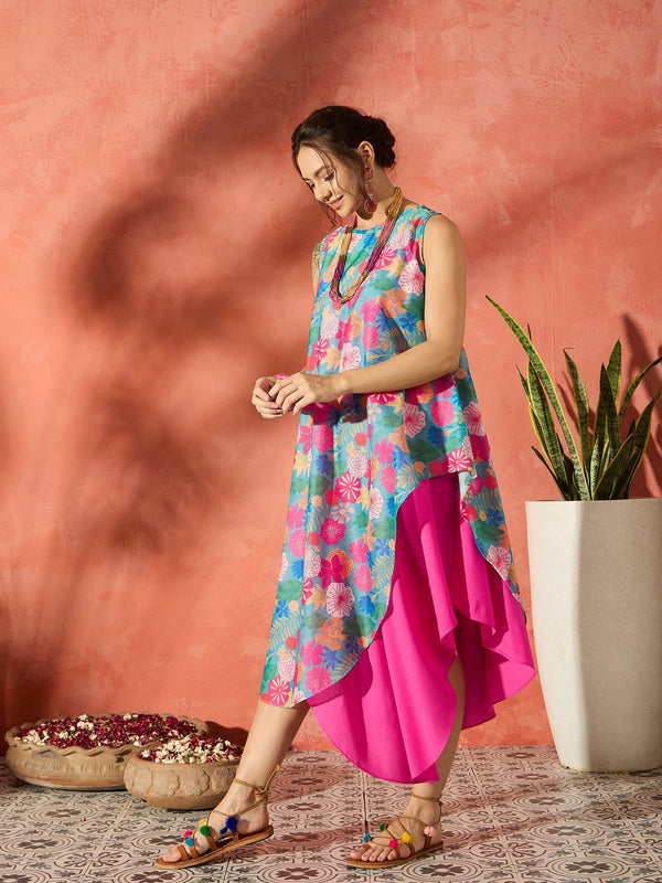 InWeave Blue Floral Fuchsia Asymmetrical Dress - Distacart