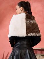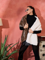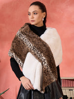 InWeave Brown Leopard Half White Rabbit Faux Fur Cape