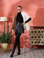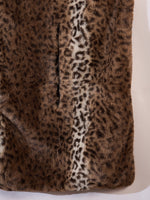 A striking cape featuring a bold brown leopard print with luxurious half white rabbit fur detailing. This unique design blends wild elegance with soft warmth, making it perfect for adding a statement piece to your winter wardrobe or special occasions.