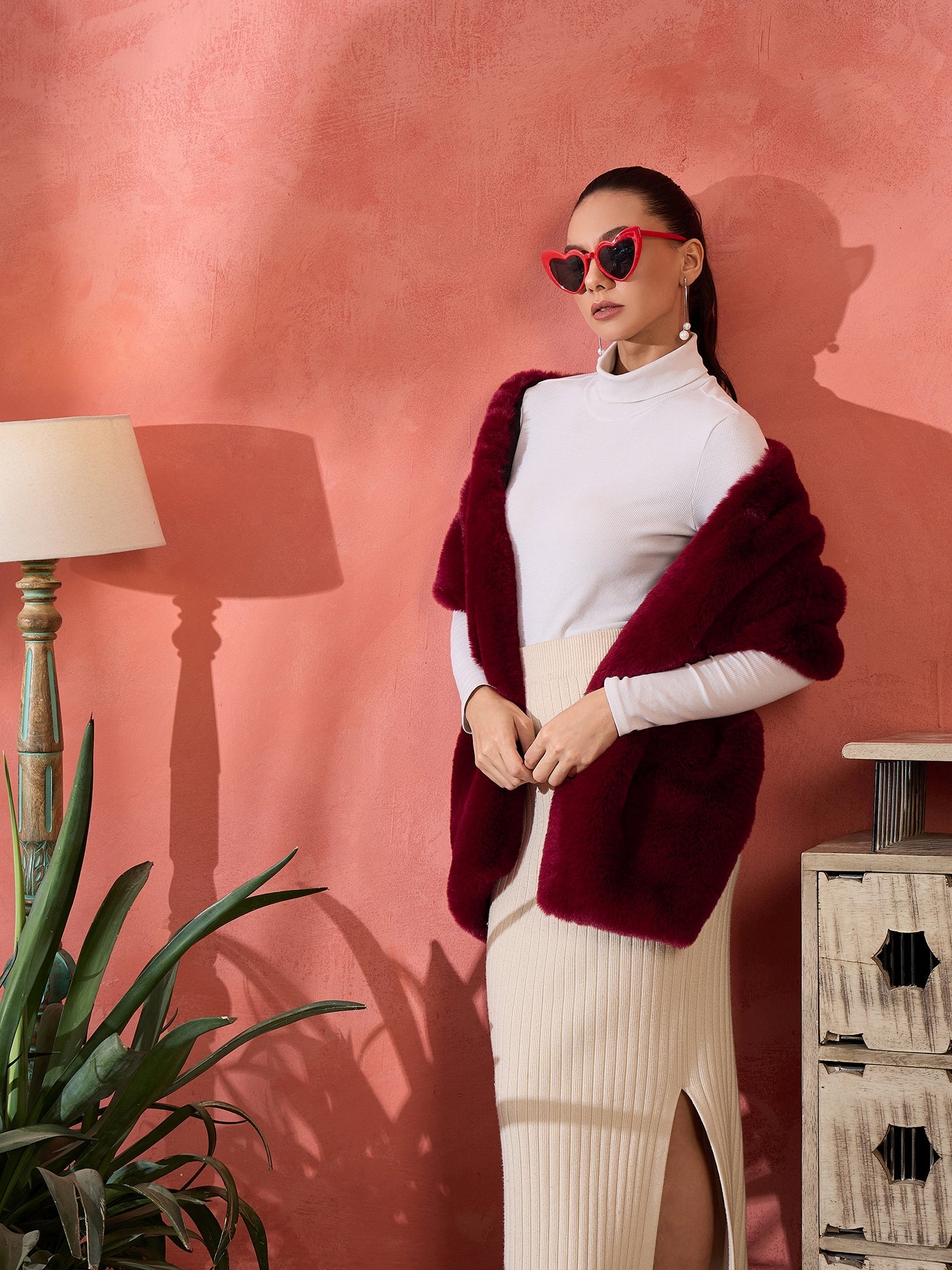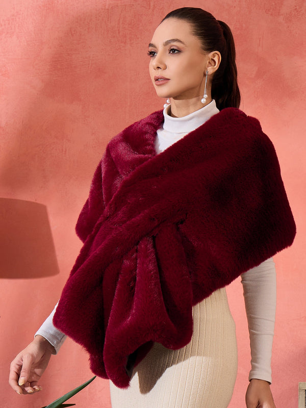 InWeave Burgundy Faux Fur Cape - Distacart