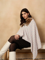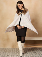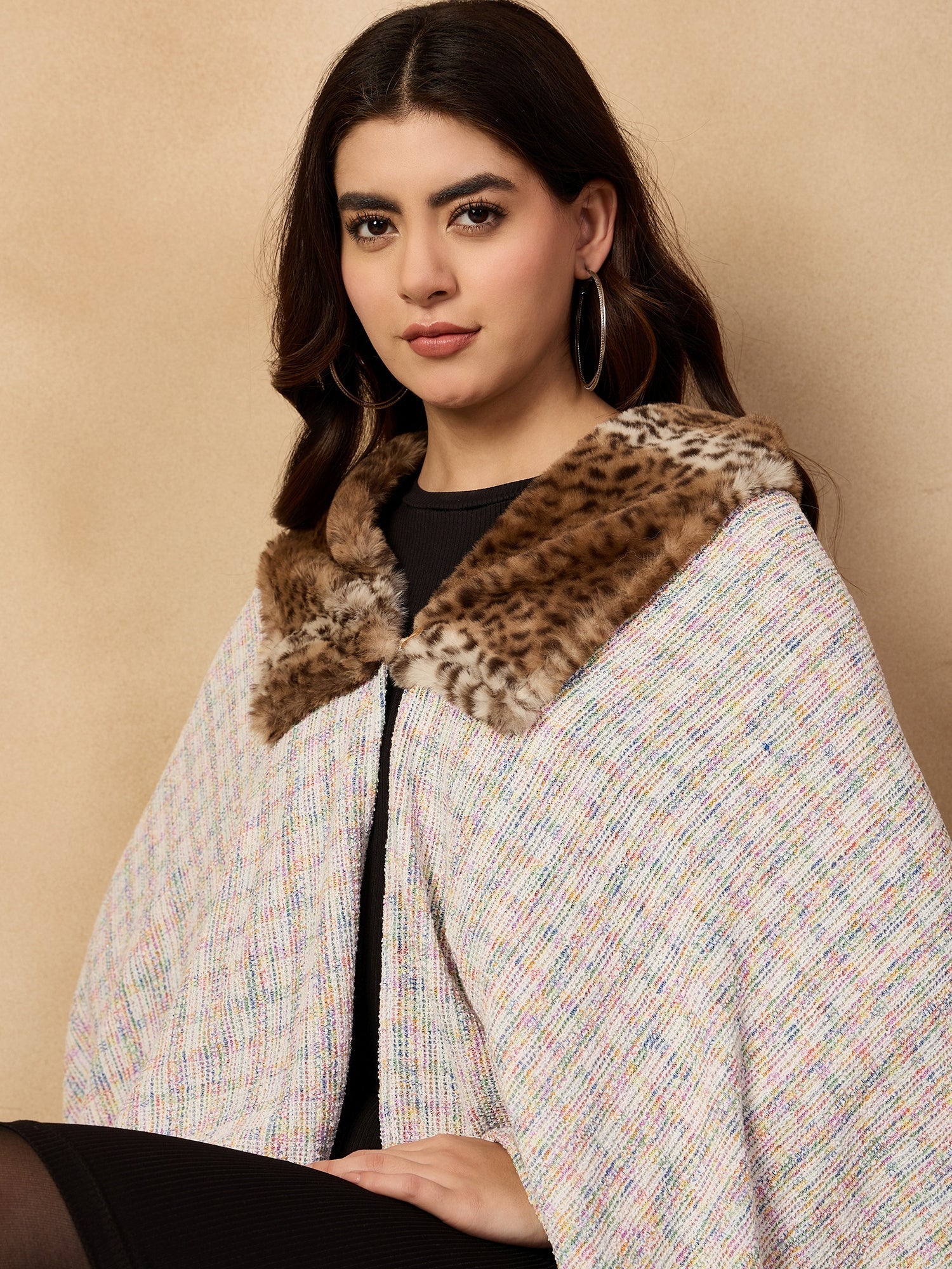 InWeave Multi White Acrylic Fur Poncho - Free Size