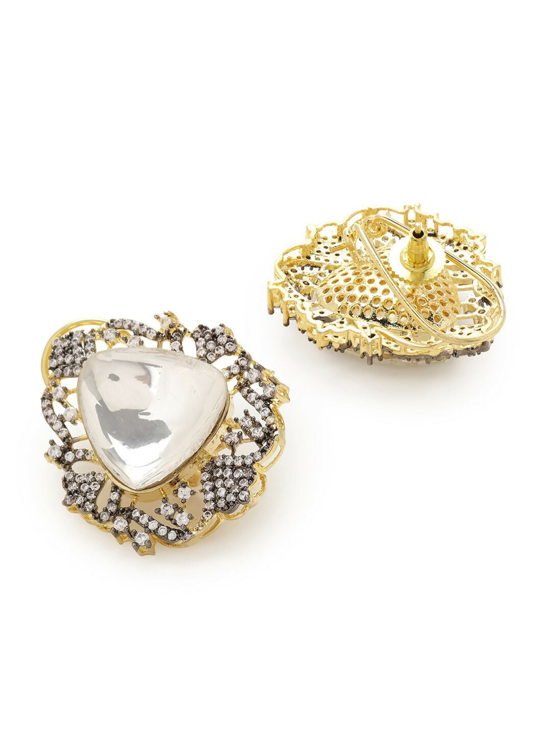 Oversized Kundan & Diamond Stone Earrings- Ruby Raang - Defaut Title