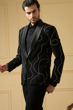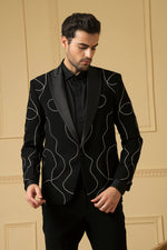. The intricate embroidery adds a touch of sophistication and visual interest, elevating your look and showcasing your unique sense of style. Crafted with luxurious fabric, this blazer offers both comfort and refinement. Whether you're attending a wedding, a party, or a formal dinner, this blazer is the perfect choice. Its versatility allows you to dress it up or down according to the occasion, making it a staple in any stylish man's wardrobe.