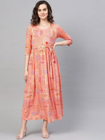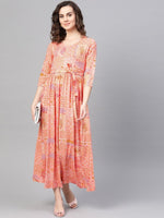 AURELIA Women Peach-Coloured & Red Printed Maxi Dress