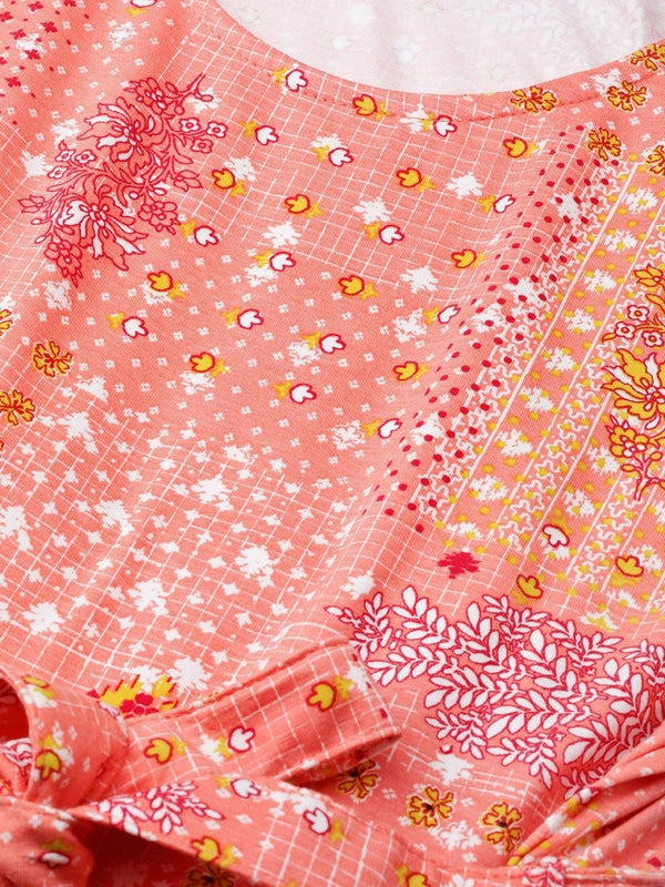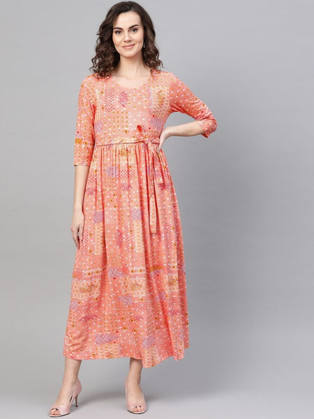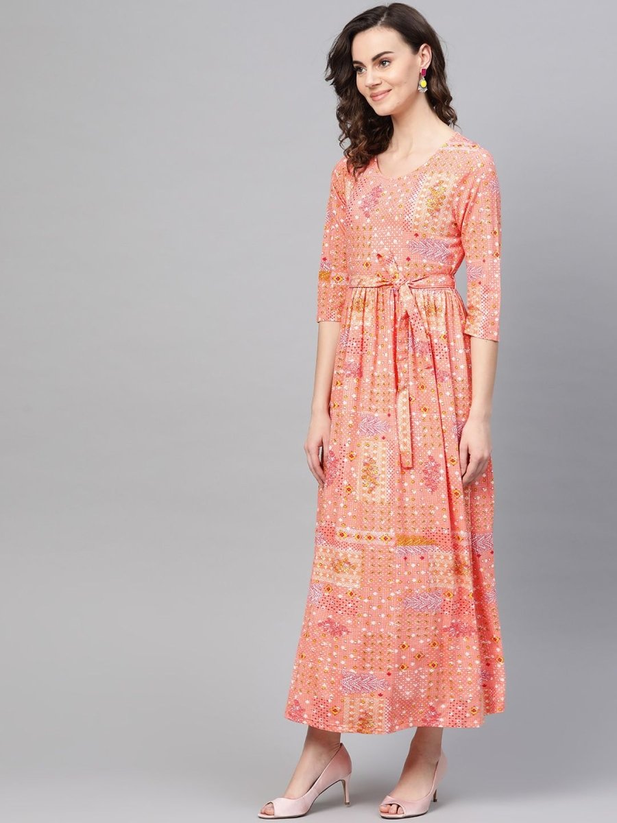 AURELIA Women Peach-Coloured & Red Printed Maxi Dress - Distacart