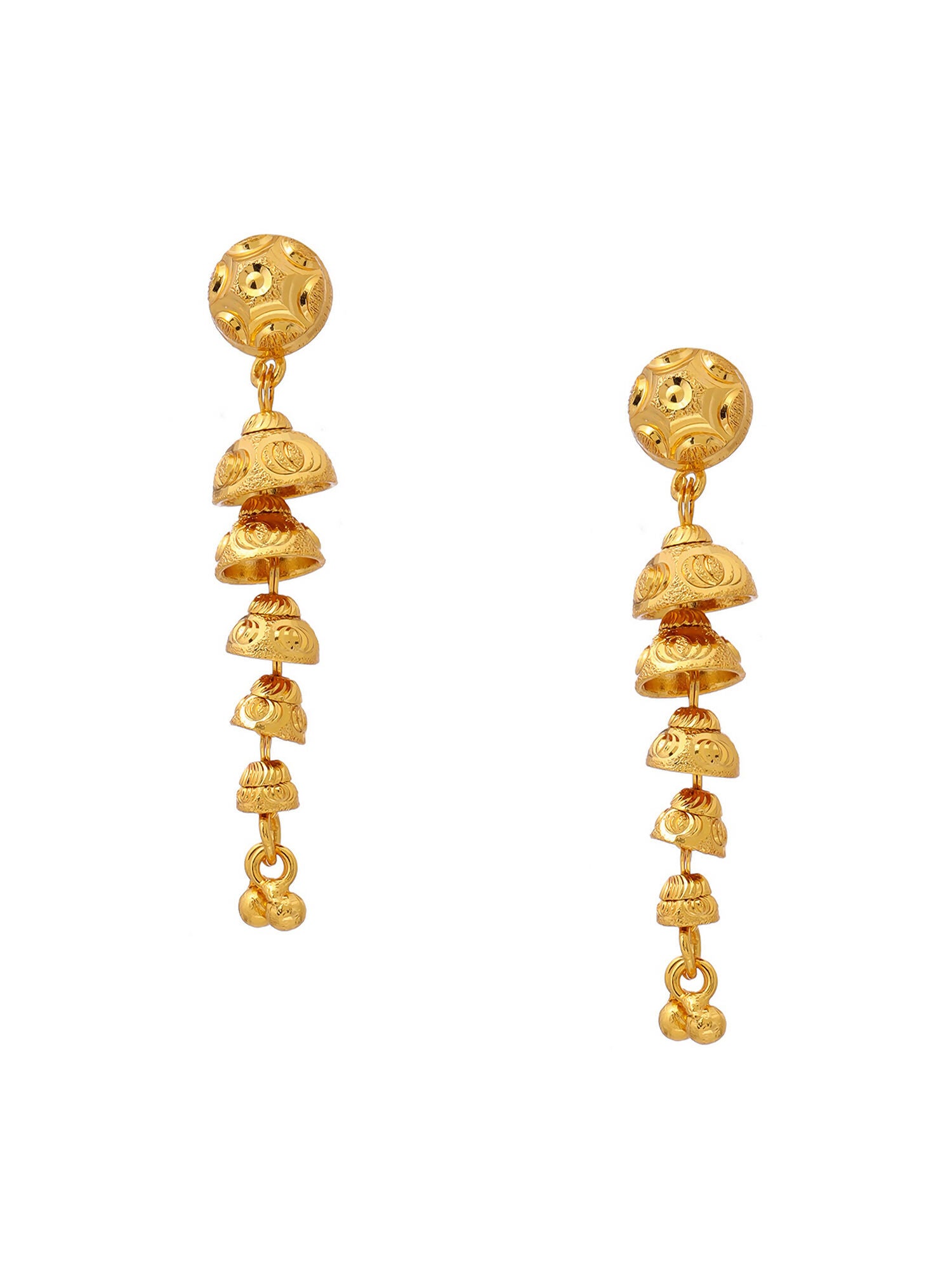 Ruby Raang Traditional Gold EarringsProduct Details Color: Gold Type: Danglers Material (Stone Material): Brass, Gold Plated Plating: Gold ...