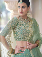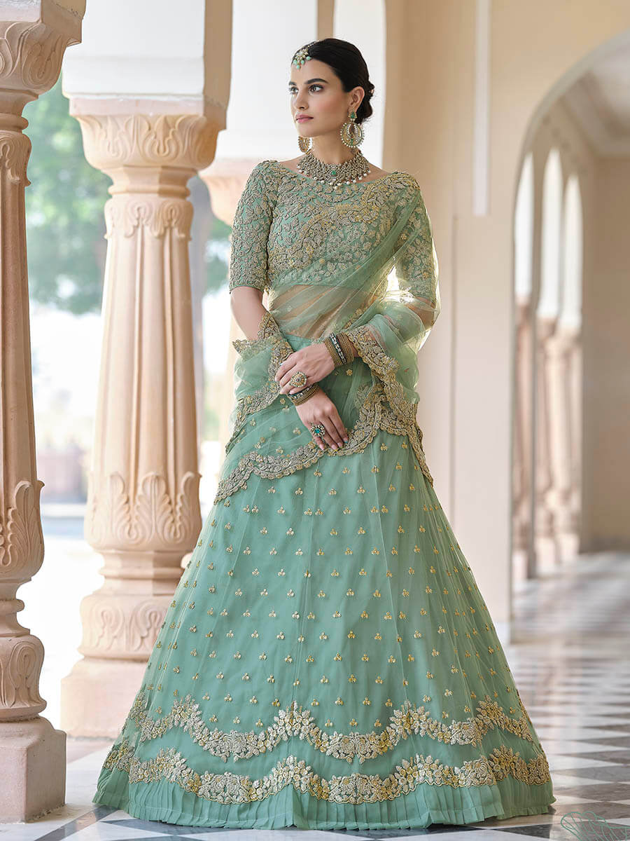 Pista Net Embroidered Lehenga features a net with banglori silk inner . Embroidery is completed with Dori & sequins. this outfit is specially designed for this wedding seasons. This Style is made in India and checked by hand to ensure high quality.