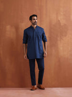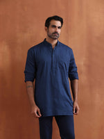 trueBrowns Men's Blue Cotton Short Kurta