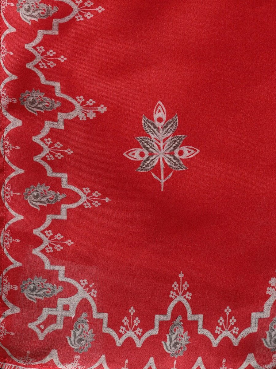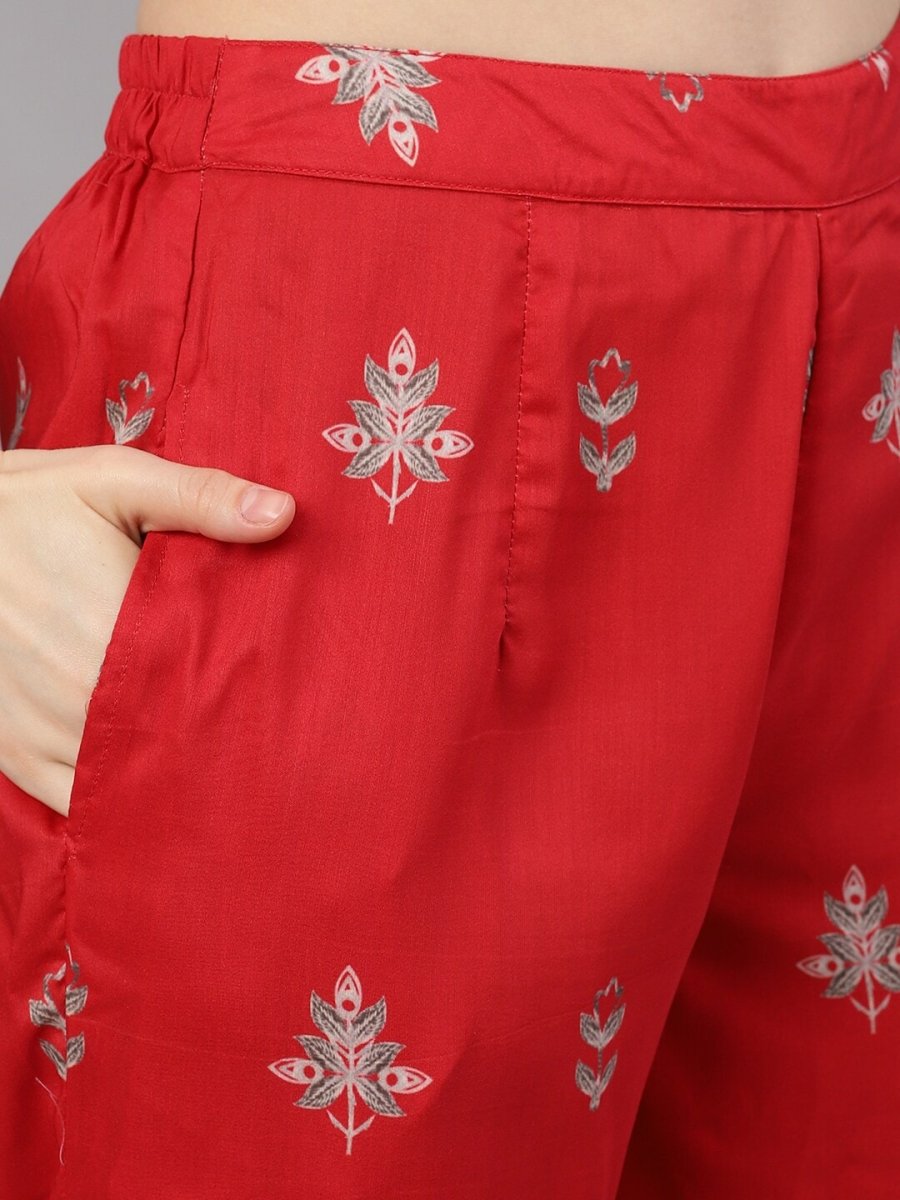 Red printed kurta with palazzos & dupatta