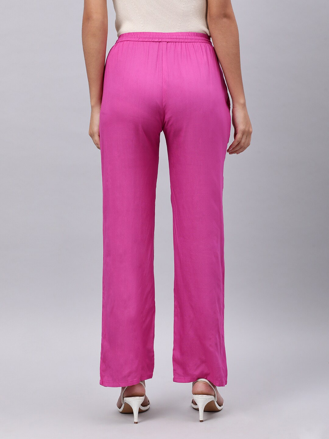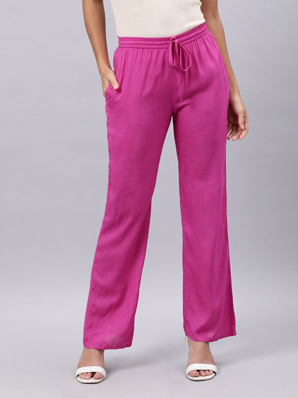 Souchii Mauve Liva Palazzos Mauve woven palazzos Solid Opaque Straight fit Elasticated waistband Length: regular Woven liva fabric Size & Fit: ...