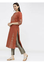Cheera Embellished Daily Wear Cotton Blend Kurta - Brown - XS-36